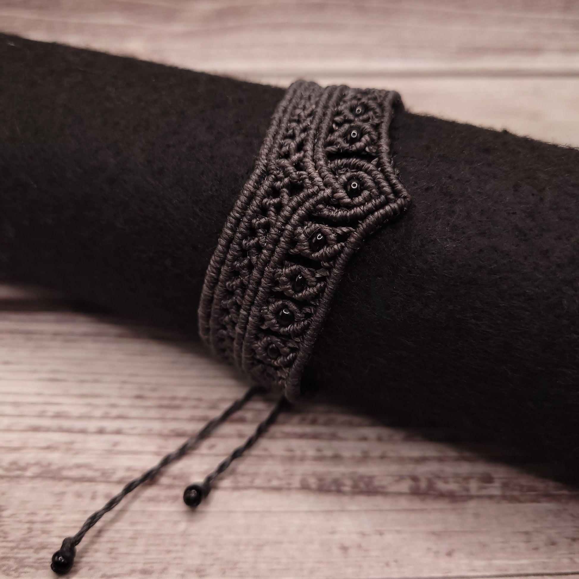 La Manchette Valdrielle est bien plus qu'un simple accessoire, c'est une déclaration de style. La combinaison de sa pointe élégante, les insertions de perles de verre et la structure en fils polyester ciré crée un look unique. Ce bijou célèbre votre individualité et s'adapte parfaitement à vos envies, qu'il soit portée en solo ou associé à d'autres pièces pour un ensemble harmonieux et personnel.
